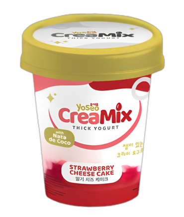 Fresh milk (65%), nata de coco (18%), water, sugar, skim milk powder (1%), anhydrous milk fat, vegetable stabilizer (vegetable, bovine gelatin), synthetic cheesecake flavor (contains natural flavor of steviol glycoside), synthetic blueberry flavor, blueberry puree (0.1%), Natural dye carmine CI No. 75470, lactic acid bacteria culture (Streptococcus thermophilus and Lactobacillus delbrueckii subsp. bulgaricus).